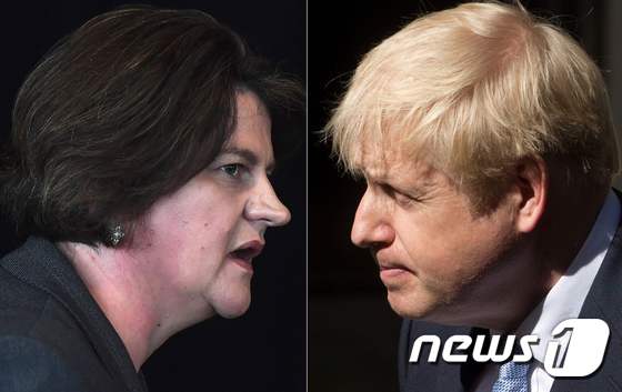 알린 포스터 북아일랜드 민주연합당 대표(왼쪽)와 보리스 존슨 영국 총리. © AFP=뉴스1 |